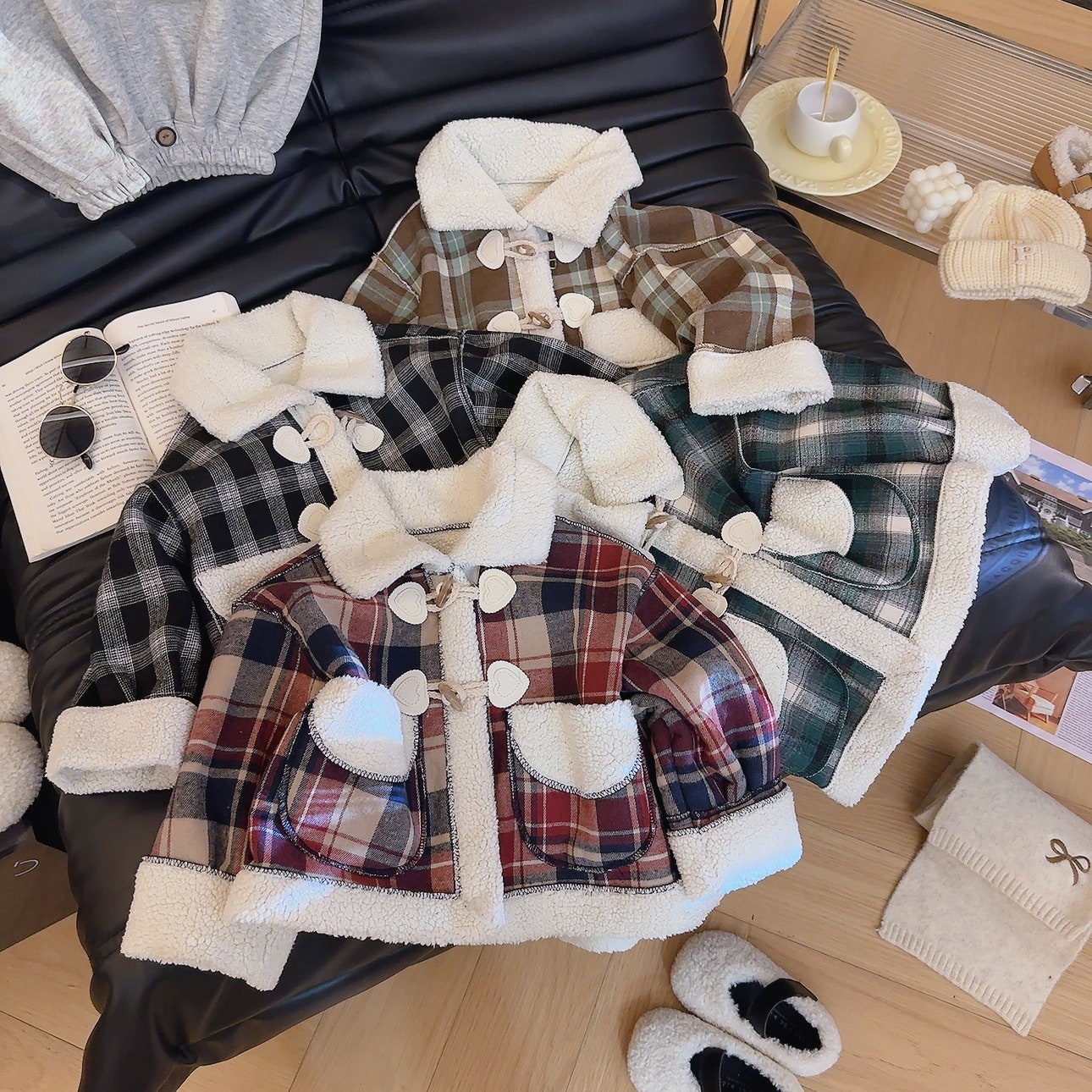 - [수입]체크뽀글더플코트