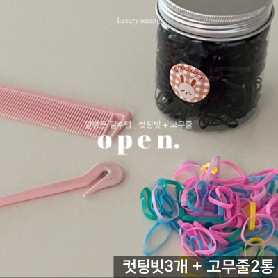 - [수입] 컷팅빗3개 + 고무줄2통 (약800개)
