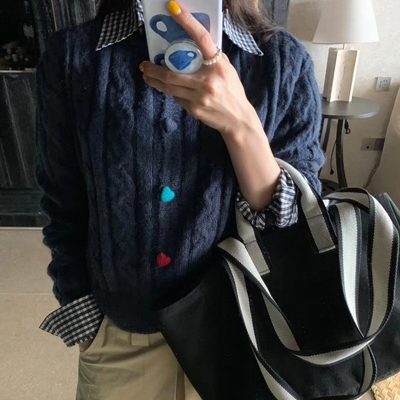 gc.[DE741]버튼포인트꽈배기니트가디건