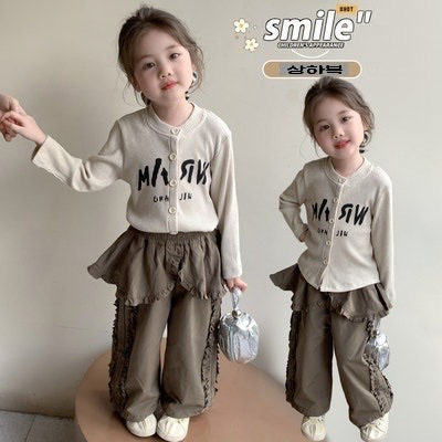 베이지가디건프릴바지셋 / 수입