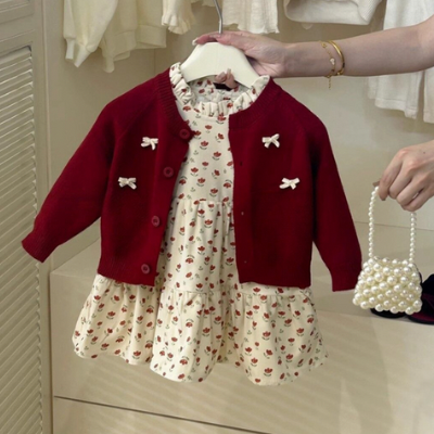 레드가디건+튤립원피스셋 ★