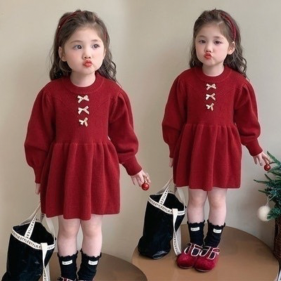 미니리본레드니트원피스 / 수입