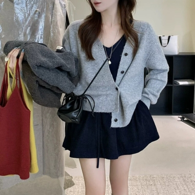 on.[CD586]투웨이가디건배색나시세트